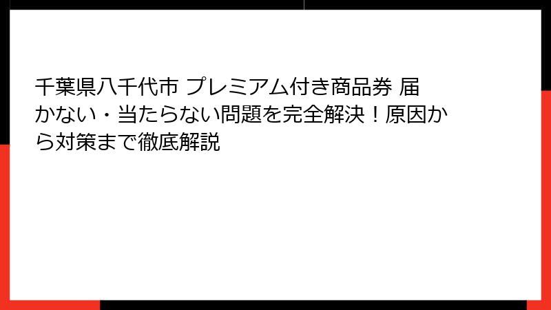 この記事では、千葉県八千代市 プレミアム付き商品券 届かない 当たらない、という多くの市民が抱える悩みを徹底的に掘り下げてきました。