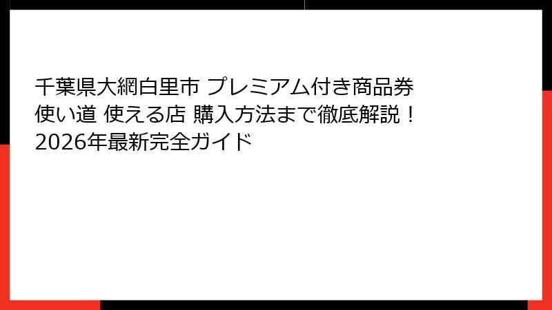 - プレミアム付き商品券の購入方法と利用条件を徹底解説!大網白里市住民必見