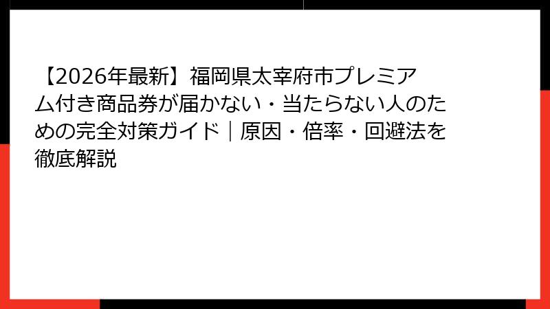 【2026年最新】福岡県太宰府市プレミアム付き商品券が届かない・当たらない人のための完全対策ガイド|原因・倍率・回避法を徹底解説