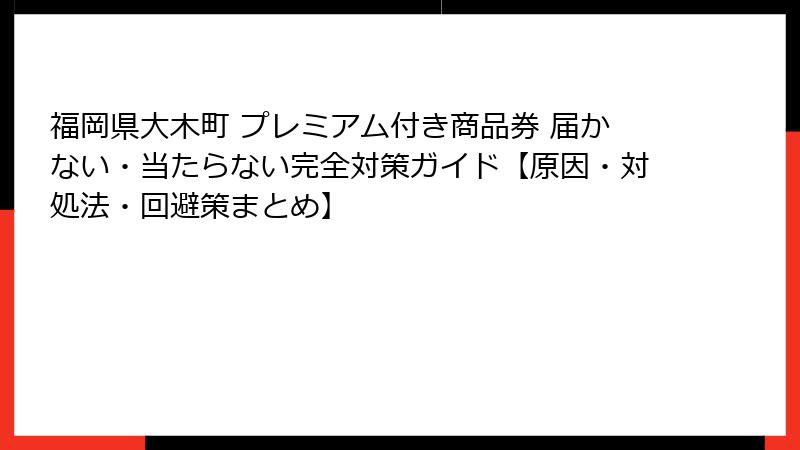 しかし、近年、検索キーワードとして「福岡県大木町 プレミアム付き商品券 届かない 当たらない」が頻出しており、多くの住民が直面するトラブルが浮き彫りになっています。