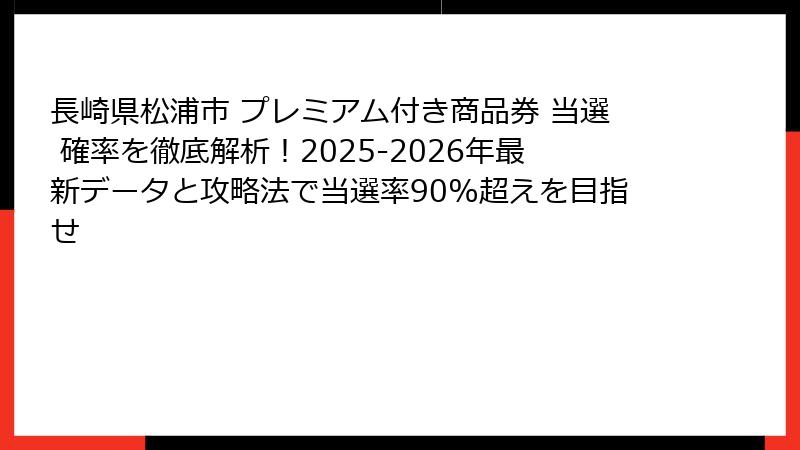 - 長崎県松浦市プレミアム付き商品券の当選確率を徹底解説!2025年最新情報から攻略法まで