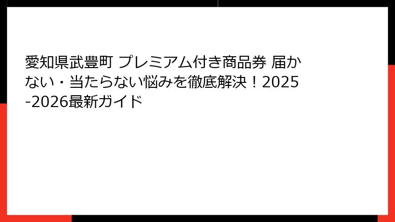 - 武豊町プレミアム付き商品券とは? 届かない・当たらない悩みを徹底解明!