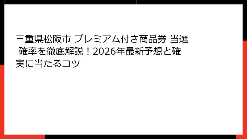 三重県松阪市 プレミアム付き商品券 当選 確率は、歴史的に見て安定していますが、予算変動に注意が必要です。