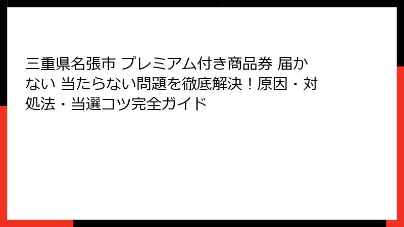 - 名張市のプレミアム付き商品券が届かない・当たらない問題の真相を徹底解説!