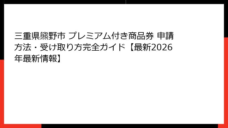 三重県熊野市 プレミアム付き商品券 申請方法・受け取り方完全ガイド【最新2026年最新情報】