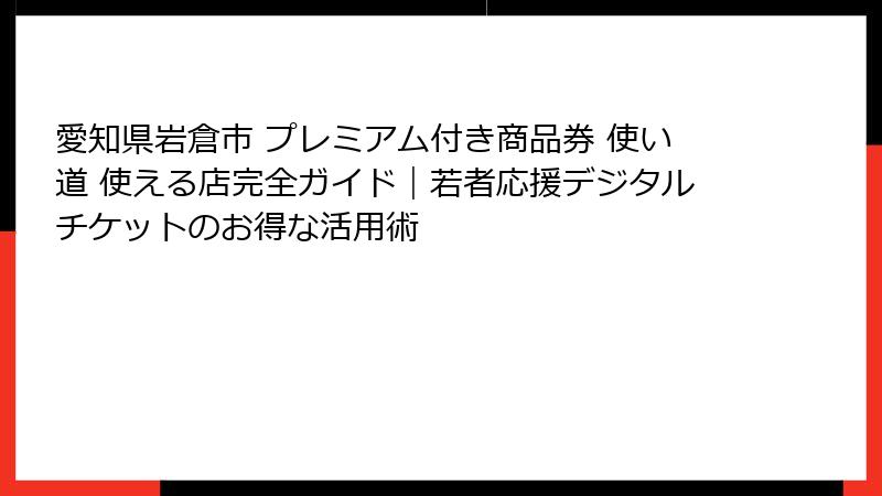 愛知県岩倉市のプレミアム付き商品券、正式名称「若者応援プレミアムデジタルチケット」は、市が発行するデジタル形式の商品券です。
