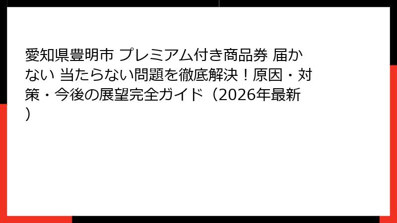 - 愛知県豊明市プレミアム付き商品券の「届かない」「当たらない」悩みとは?住民のリアルな声と問題概要