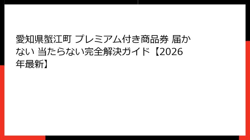 - 愛知県蟹江町プレミアム付き商品券が届かない・当たらないお悩み完全ガイド【2026年最新版】