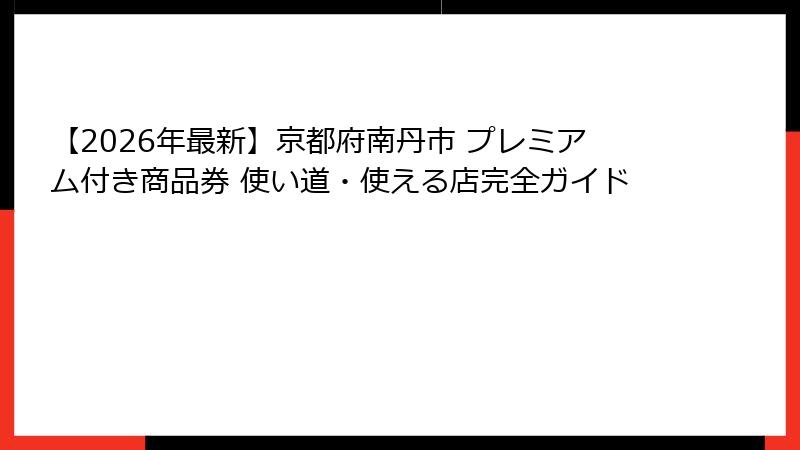 【2026年最新】京都府南丹市 プレミアム付き商品券 使い道・使える店完全ガイド