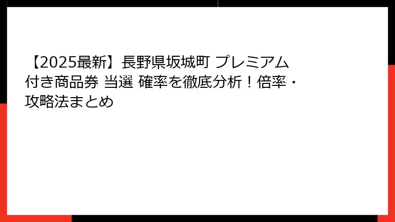 長野県坂城町 プレミアム付き商品券 当選 確率をキーワードに、詳細に解説します。