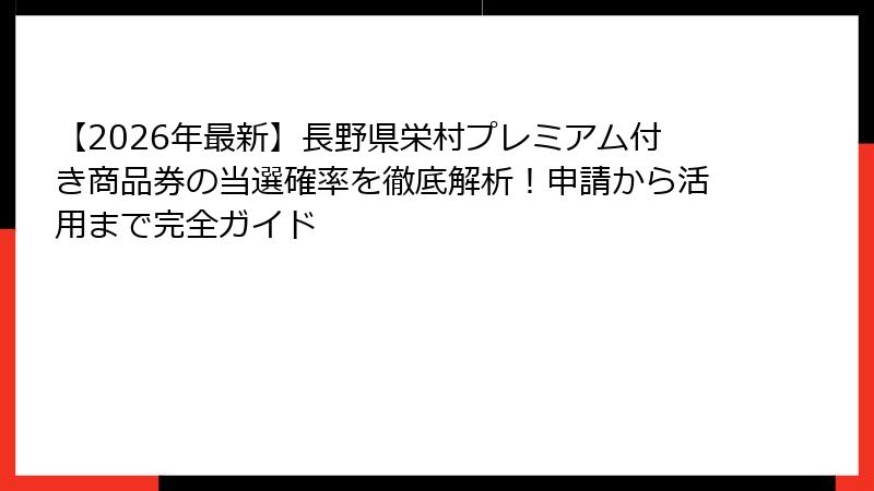 2026年現在、栄村では観光振興を軸とした商品券が発行されており、当選確率は申請状況によって変動しますが、過去の傾向から見て比較的高い水準を維持しています。