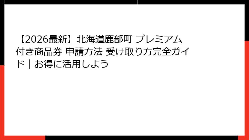 【2026最新】北海道鹿部町 プレミアム付き商品券 申請方法 受け取り方完全ガイド|お得に活用しよう