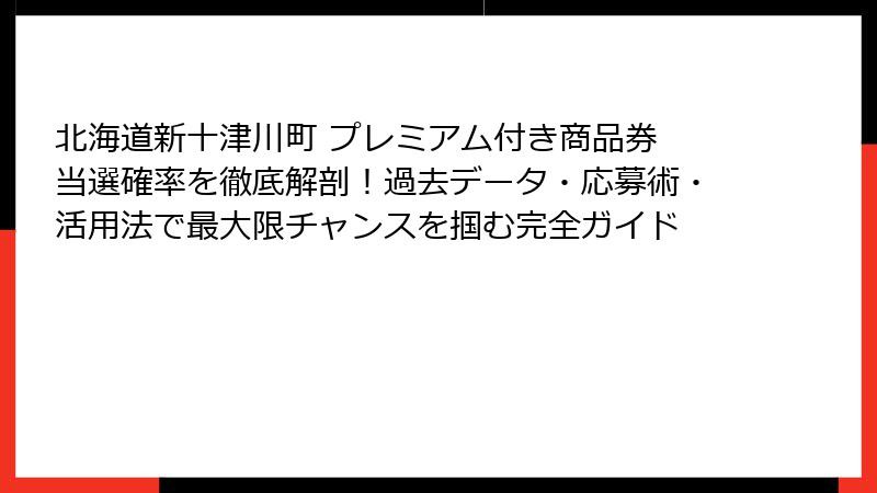 北海道新十津川町プレミアム付き商品券当選確率を最大化するためには、こうした全体像を把握することが第一歩です。
