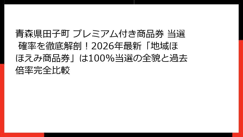 - 青森県田子町プレミアム付き商品券の当選確率を徹底解剖!2026年最新「地域ほほえみ商品券」の実態と過去データ完全比較