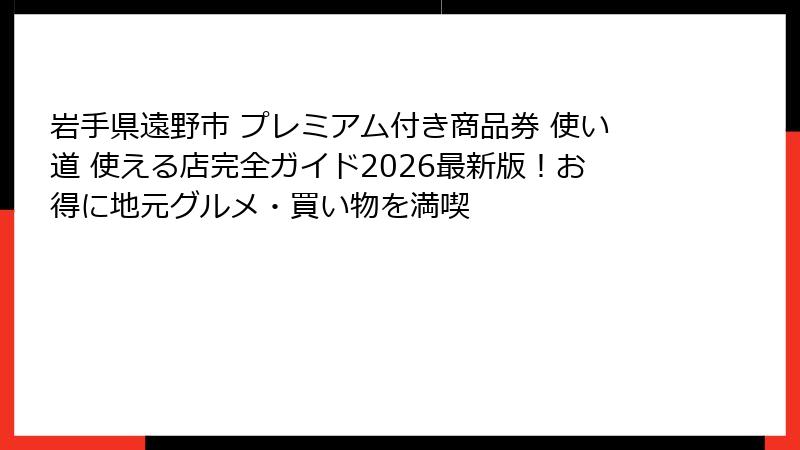 この記事では、プレミアム付き商品券の基本から遠野市の魅力、過去事例の詳細、2026年の展望まで、たっぷりとお伝えします。