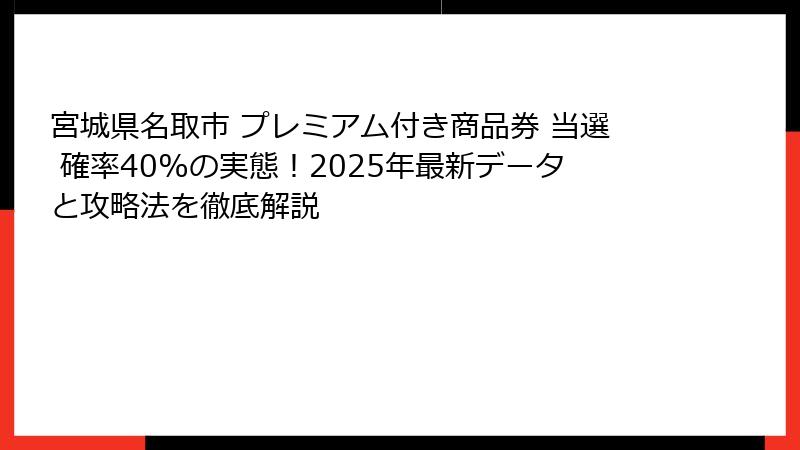 で分け、宮城県名取市 プレミアム付き商品券 当選 確率の不明点をクリアに。 2026年の新FAQも想定し、読者の安心を促します。 当選確率は本当に40%ですか?計算方法は?