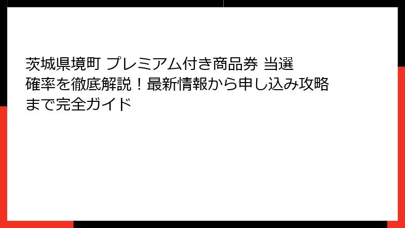 - 最新情報 – 2025-2026年境町プレミアム商品券の詳細と当選確率予測