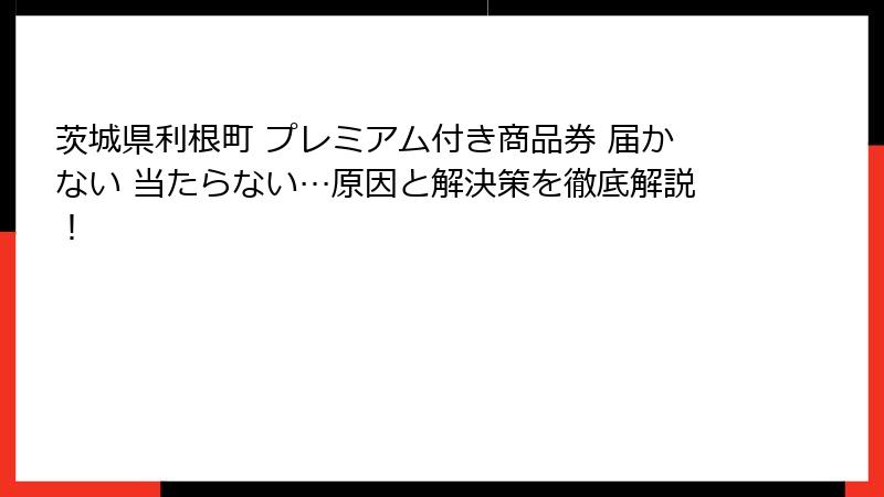 茨城県利根町で話題のプレミアム付き商品券について、多くの方が検索しているキーワード「茨城県利根町 プレミアム付き商品券 届かない 当たらない」に焦点を当てて、詳しく掘り下げていきます。