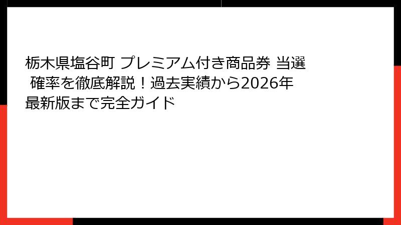 - 2026年最新版!塩谷町プレミアム付き商品券の当選確率 – 抽選なしの配布型で確率100%?