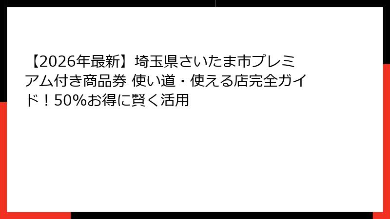 - 埼玉県さいたま市プレミアム付き商品券(2026年最新)とは?プレミアム率50%のお得なデジタル商品券概要