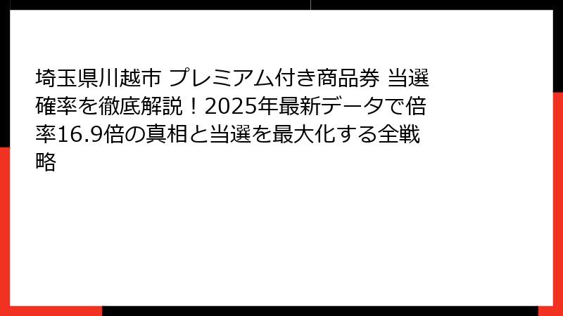 この記事では、埼玉県川越市のプレミアム付き商品券の概要から、当選確率の基礎的な考え方、そしてその魅力について、徹底的に掘り下げていきます。