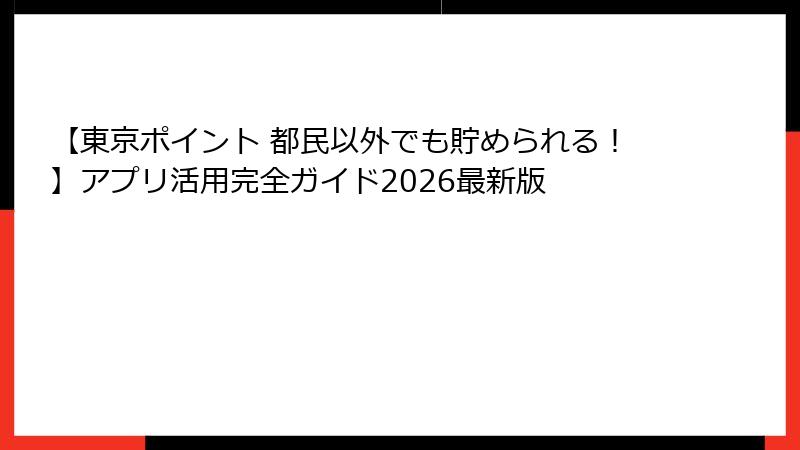 あなたが「東京ポイント 都民以外」というキーワードで検索したということは、きっと東京都が提供するこのポイントシステムについて、都内在住者以外の人々がどのように関われるのか、気になっているのでしょう。