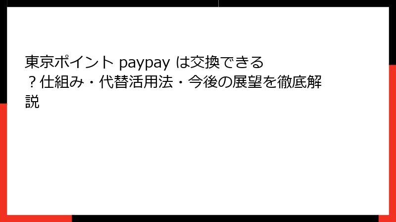 東京ポイント paypay は、このポイントをPayPayに交換したいというニーズから検索されますが、キャンペーンの詳細を知ることで、代替的な活用法が見えてきます。
