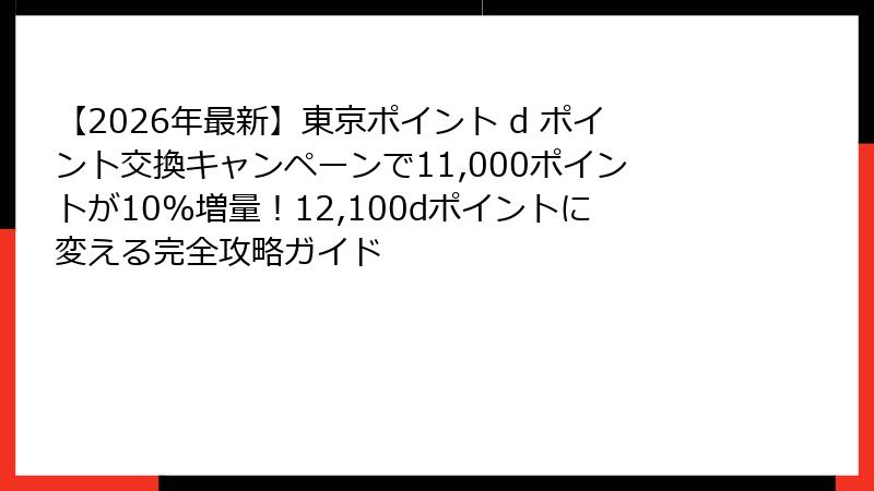 【2026年最新】東京ポイント d ポイント交換キャンペーンで11,000ポイントが10%増量!12,100dポイントに変える完全攻略ガイド