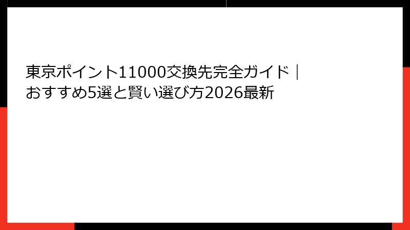 - 東京ポイント11,000のおすすめ交換先:あなたのライフスタイルに合ったベストチョイス