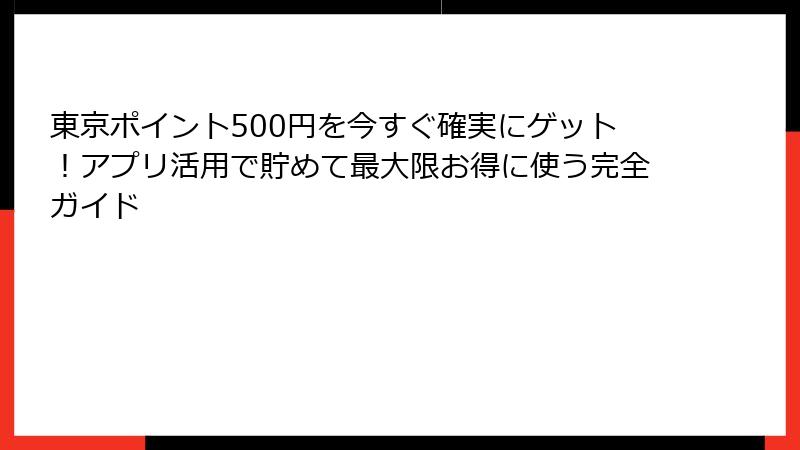- 東京ポイント500円とは?東京都公式アプリで手軽にゲットできるお得ポイントの魅力