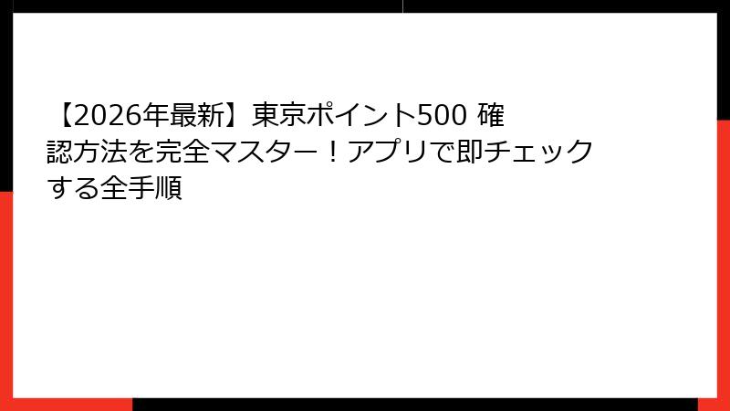 東京ポイント500の確認方法を日常化し、トレンド対応。