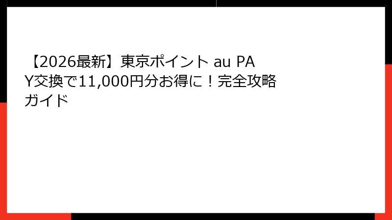 特に、2026年現在、抽選でPontaポイントが当たるキャンペーンが実施されており、東京ポイント au payの検索が増えています。