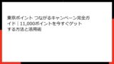 - 東京ポイントの貯め方:キャンペーン参加からQRコード活用まで