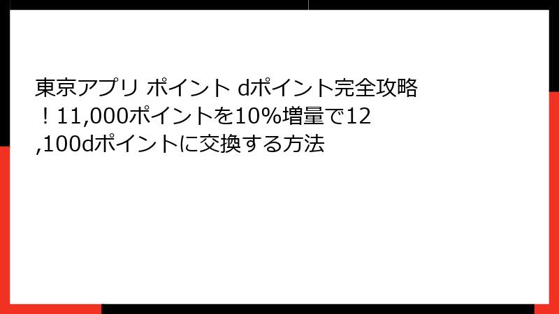 - 東京アプリ ポイントをdポイントに交換で10%増量!キャンペーン内容とメリットを深掘り