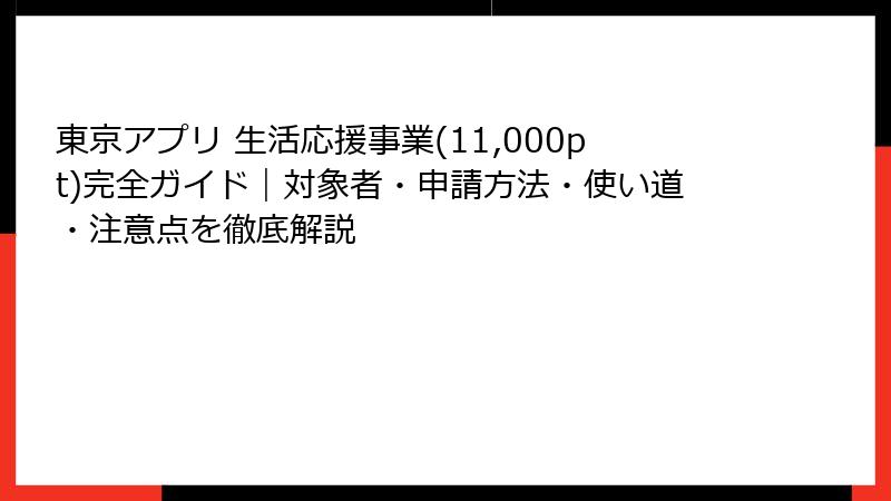 - あなたは対象者?東京アプリ 生活応援事業(11,000pt)の参加資格と条件を徹底チェック