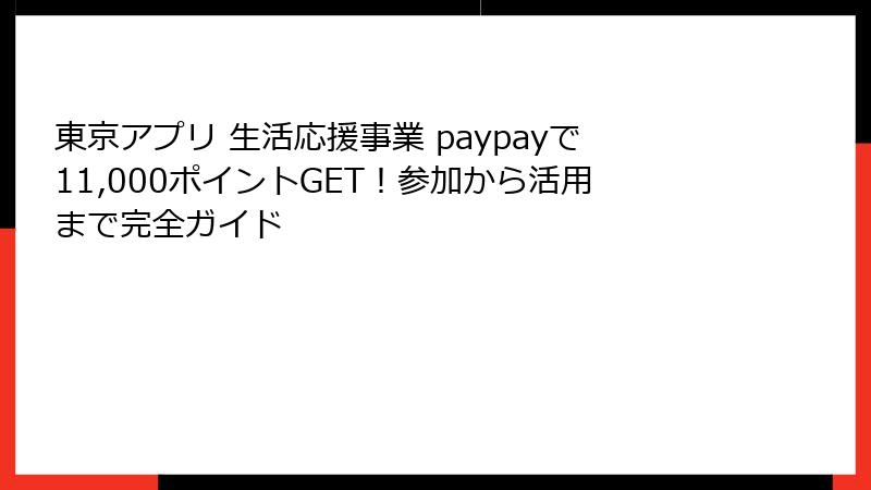 - 東京アプリ 生活応援事業 paypayとは? 都民必見の11,000円ポイントキャンペーンの全貌