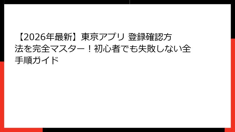 本記事では、東京アプリの基本的な概要から始め、登録確認方法の重要性を多角的に解説します。