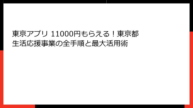 「東京アプリ 11000円」のポイントは、こうした家計のピンチを救うための具体策です。