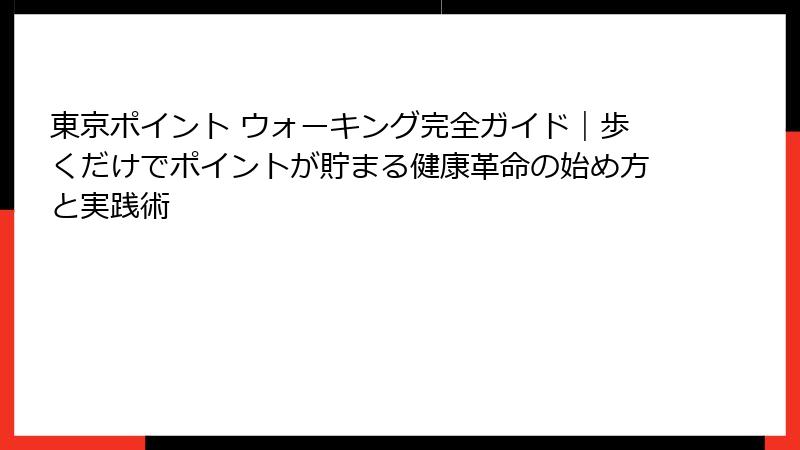 東京ポイント ウォーキングは、2020年代初頭から本格化し、コロナ禍後の健康意識向上に大きく寄与しています。
