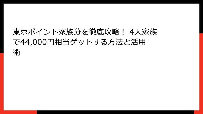 この記事では、「東京ポイント 家族分」の基本から、家族での活用法までを詳しく解説していきます。