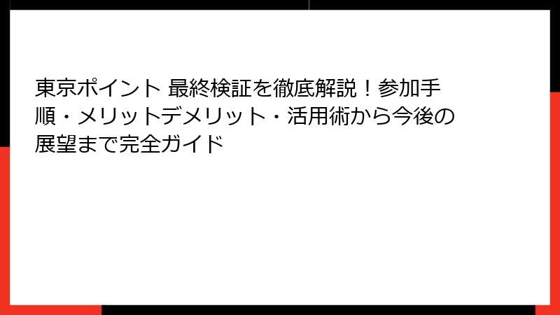 このまとめを通じて、東京ポイント最終検証の全貌を把握し、これからのステップを踏み出してください。