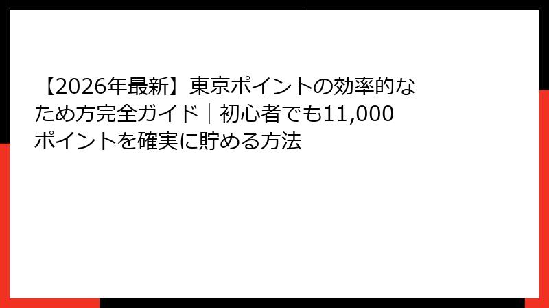 この記事では、東京ポイントの基本から貯め方の全体像までを詳しく解説し、初心者でもすぐに実践できるようにガイドします。