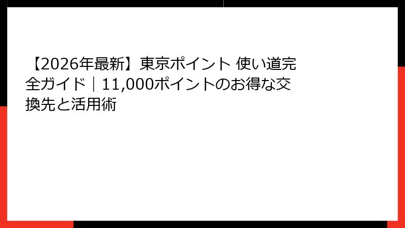 交換方法から使い道、注意点、お得戦略までを理解することで、東京ポイントは強力な生活支援ツールとなります。