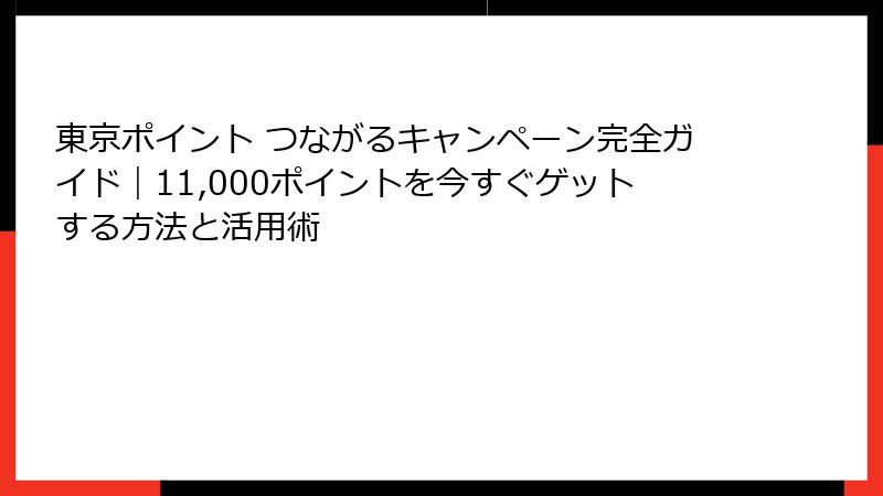 - 東京ポイント つながるキャンペーンの概要と魅力 – 東京都民必見の11,000ポイント付与事業