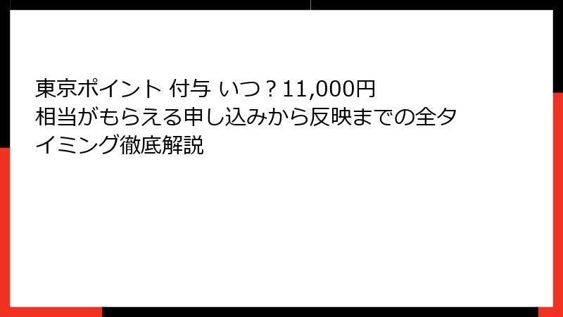 「東京ポイント 付与 いつ」の核心は、申し込みから付与までのタイムラインにあります。