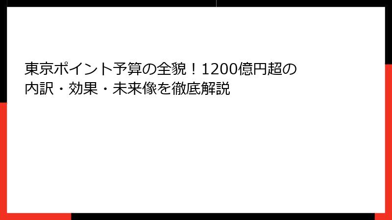 - 東京ポイント予算の全貌! 1200億円超の内訳と都の財政戦略を解剖