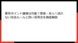 このようなツールを駆使すれば、ポイントの有効活用が容易になり、東京での生活コストを大幅に削減できます。