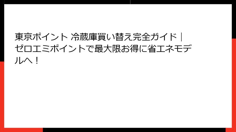 今日は、東京都が推進する「東京ポイント」制度について、特に冷蔵庫の買い替えに焦点を当てて詳しく解説します。