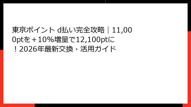 - 東京ポイント d払い お得交換完全ガイド|東京都11,000ポイントをdポイントに+10%増量で最大12,100ptに!2026年最新キャンペーン