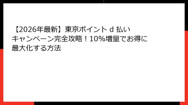 - 東京ポイント d 払いキャンペーンとは?概要と魅力的なポイント還元システムの全貌